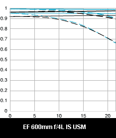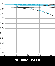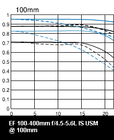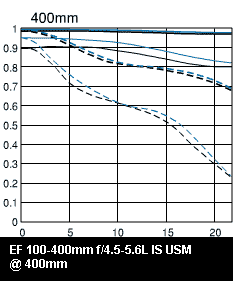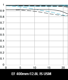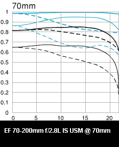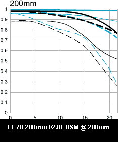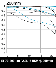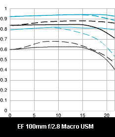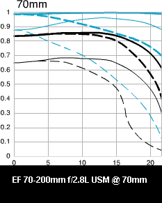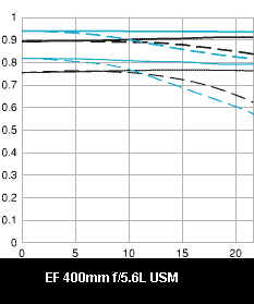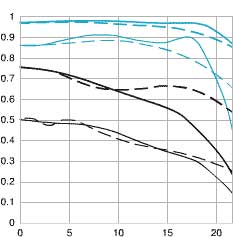 — keep in mind that the black lines show the lens wide open while the blue lines show the lens stopped down to f/8, so the closer these sets of lines are to each other the better the performance of the lens when used wide open. The very best lenses will have the black and the blue lines close together.