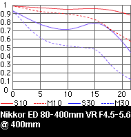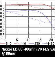 — the higher up the chart the 30 LP/mm line is (the thin lines), the higher the resolving power and thus subjective sharpness of the lens will be.